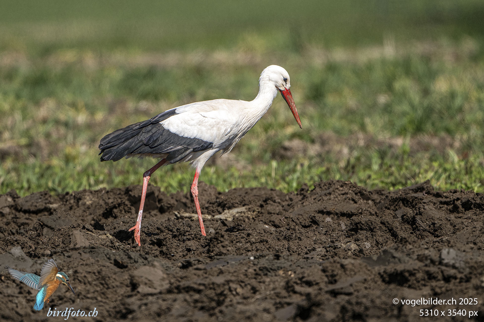 Ein Weissstorch war der erste, der merkte, dass ein Feld umgeplügt wird, und dass da Hoffnung auf Nahrung war