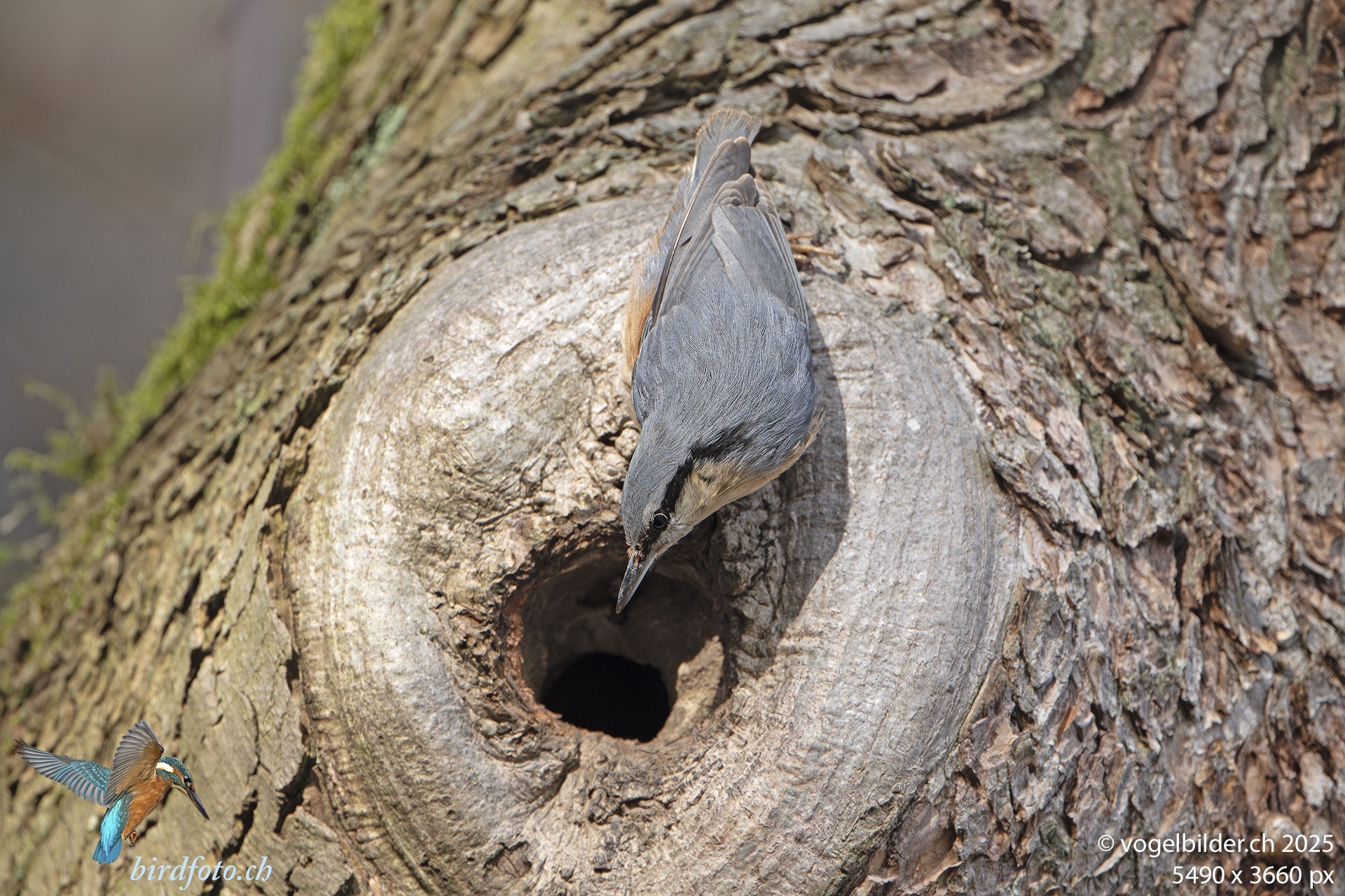die Kleiber sind aktiv, rufen, und haben wohl schon ihren bevorzugten Brutplatz gefunden